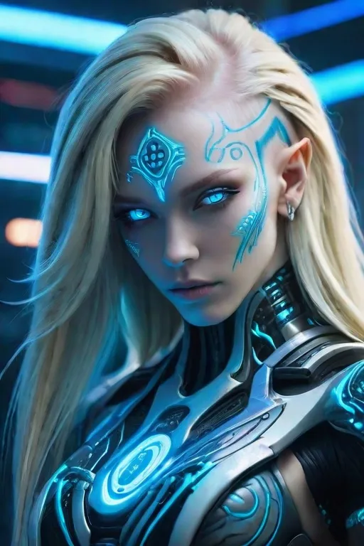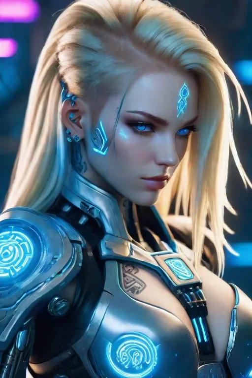 These are complex questions that we will need to grapple with as technology continues to advance. But for now, we can simply marvel at the beauty and mystery of this futuristic cyborg woman.