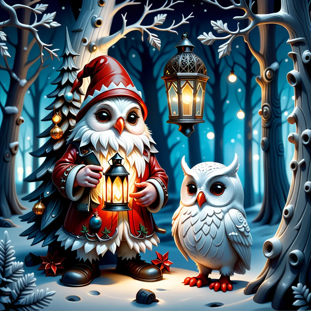 In the heart of the winter woods, Jasper, the youngest of the Christmas gnomes, trudged through the crisp night air, his lantern illuminating the path ahead.