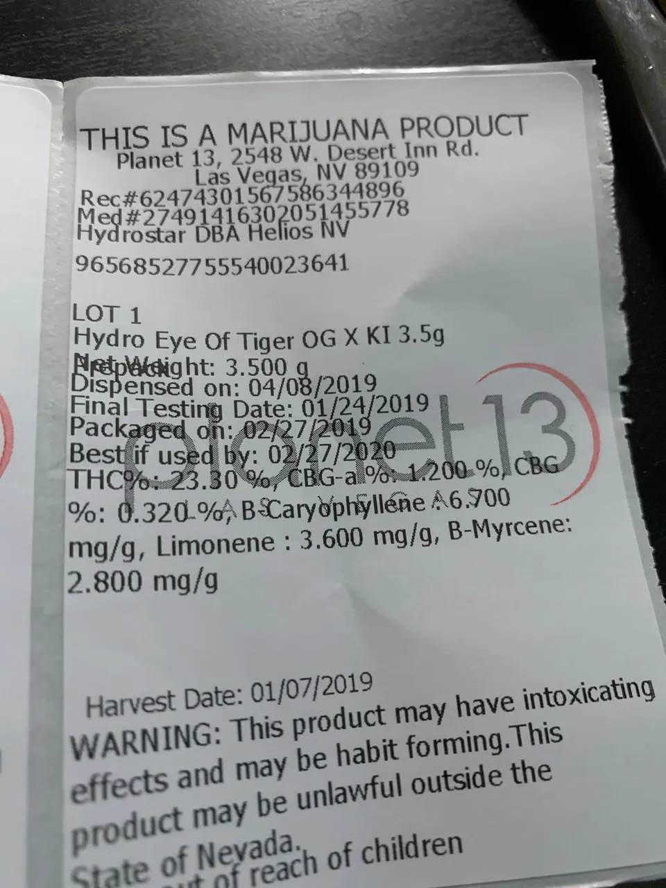 23% THC and heavy in B Care ...the Liminene gives it that skunky og taste to it
