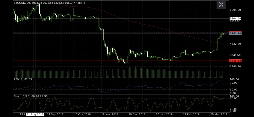 Crypto as a whole is still be continuously led beneath the surface by the likes of LTC, ETH, EOS, etc. I expect this grinding up action to continue until some of these targets are met. 6000+ magnet.
