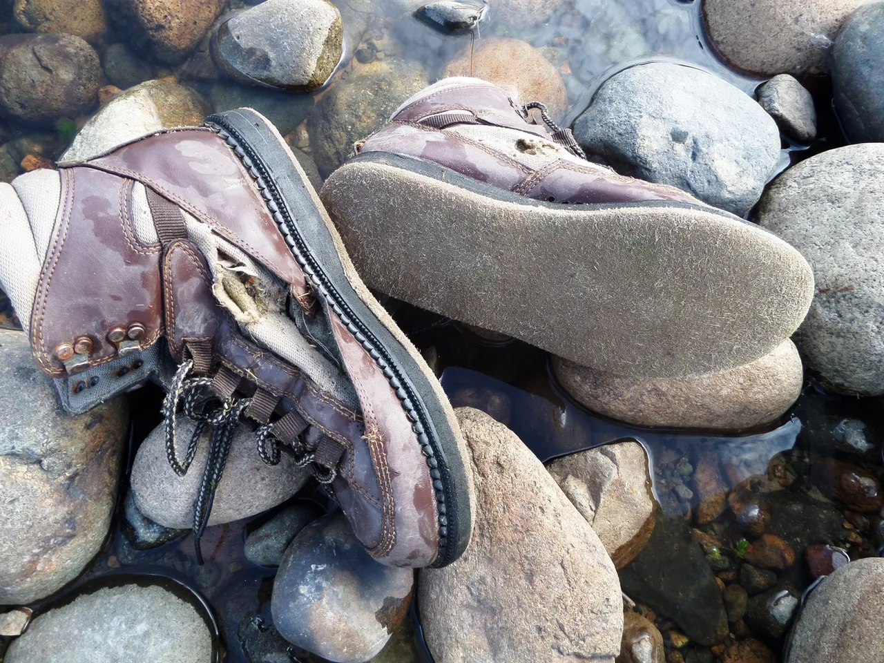 Mis botas de vadeo están rotas, hace tan solo un par de años que las tengo pero el uso ha sido intenso, no aguantaron y seguramente este será el último día de uso. Como previsión tengo otro par sin estrenar en la cabaña, estaba seguro que las viejas no aguantarían esa intensa semana de pesca.