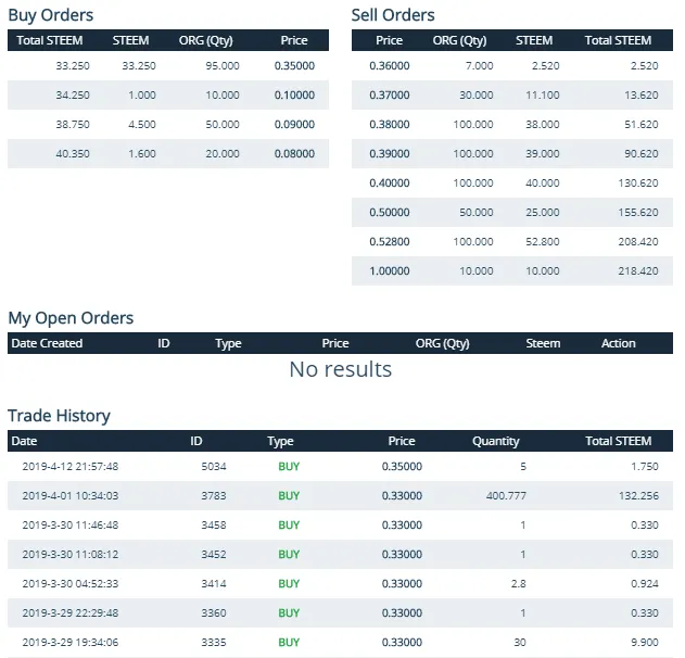 그런데 오더북을 보니 대기 중인 거래가 꽤 있네요. 가장 최근 거래는 4월12일 저녁 9시57분. 흠.. 한국 시각 기준으로는 24시간 이전인데, 아마 스팀엔진의 기준 시점이 한국시각이 아닌 모양입니다. 그런데 아차! 오더를 넣으려면 제 잔고가 필요하단 사실을 깨닫습니다.