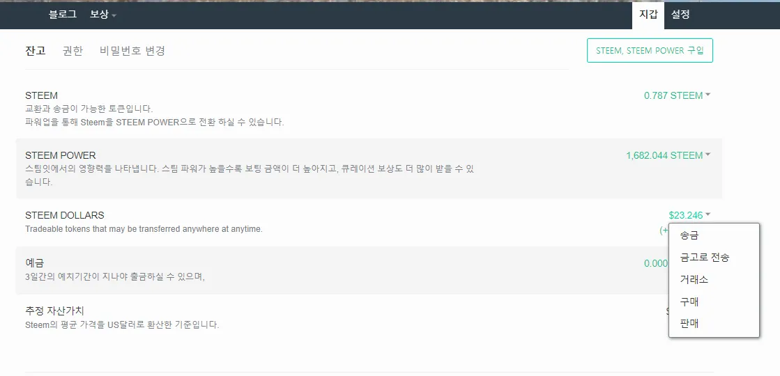 제 지갑에 가보니, 잔고가 없습니다. 당연히 그렇겠죠ㅋ 그런데 이런... deposit을 steem으로만 받네요. 제가 요즘 steem은 없고, SBD만 있는데.. SBD로 steem을 살 수 있겠죠? 제가 경험이 없어서.. 어디 거래소를 가야하는건가..