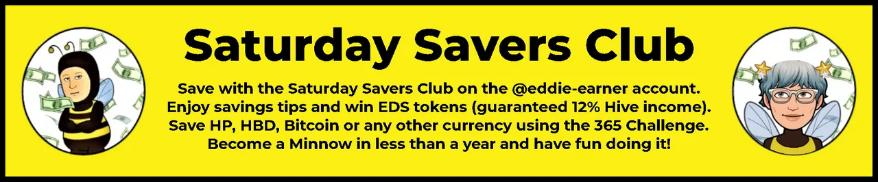 By the way, if you want to work on your Hive goals or savings, join us in the Saturday Savers Club. Click on the banner below to learn about it or just ask away through the comment box. And worry not! It's not that complicated.😉