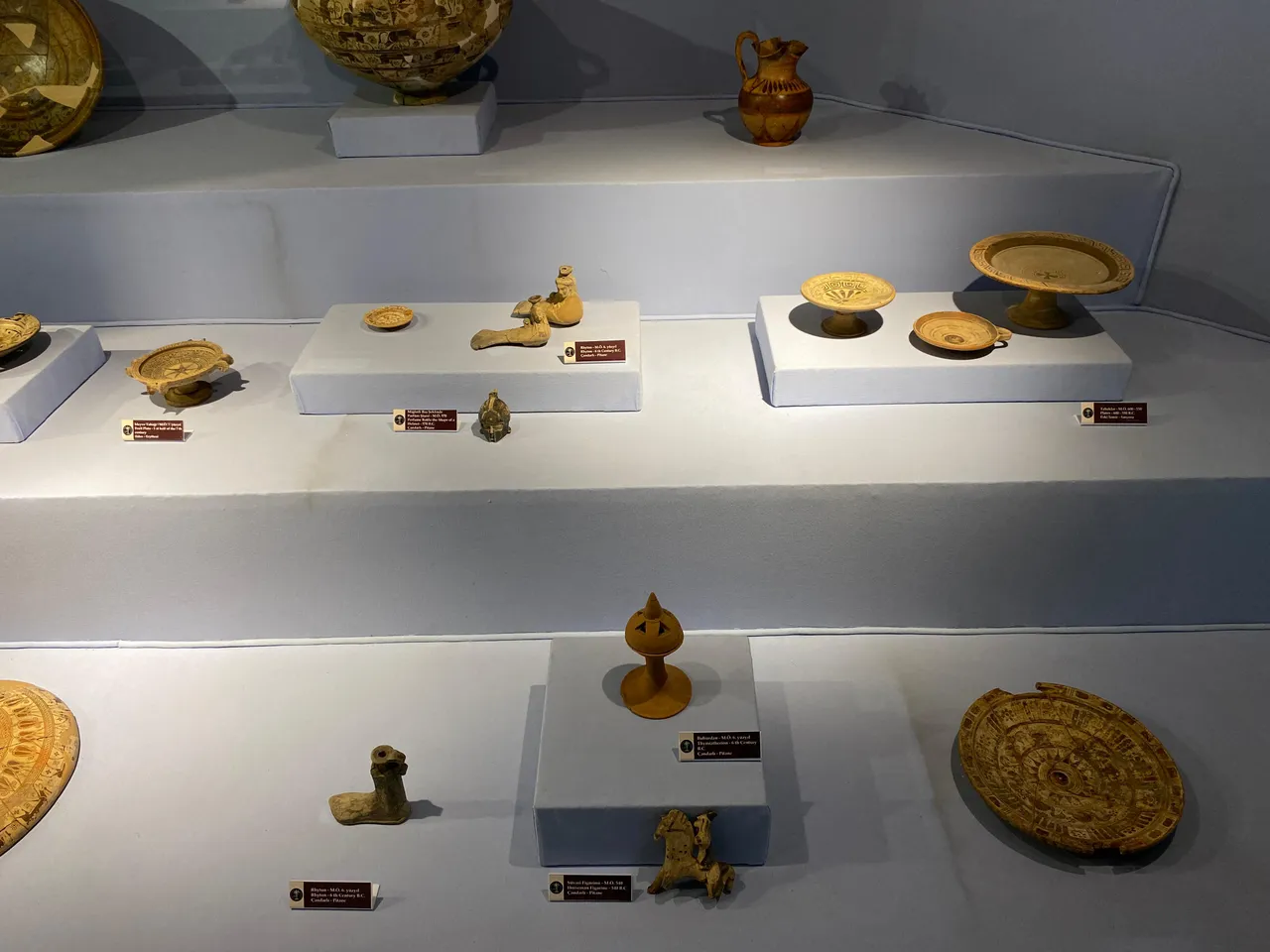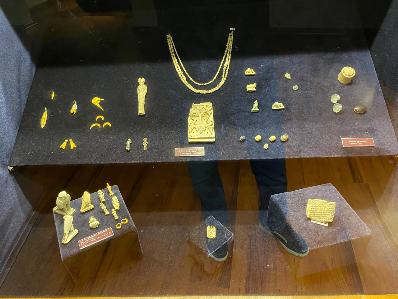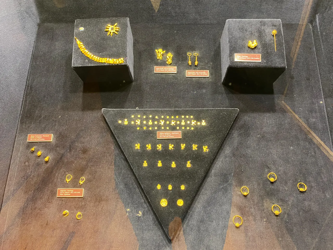 The artifacts you see here were found near a village called Ildırı near Çeşme. The artifacts include gold, bronze, ceramic, ivory and many other materials. The artifacts found prove that this settlement really lived in abundance and wealth. I must also say that they had an incredible level of craftsmanship. The most impressive sculptures I have seen after the Roman period. Moreover, I think it is even more difficult to sculpt them because of their small size. There are many things here, from daily items used at that time to shields used in wars. All of them have engravings reflecting their own culture.