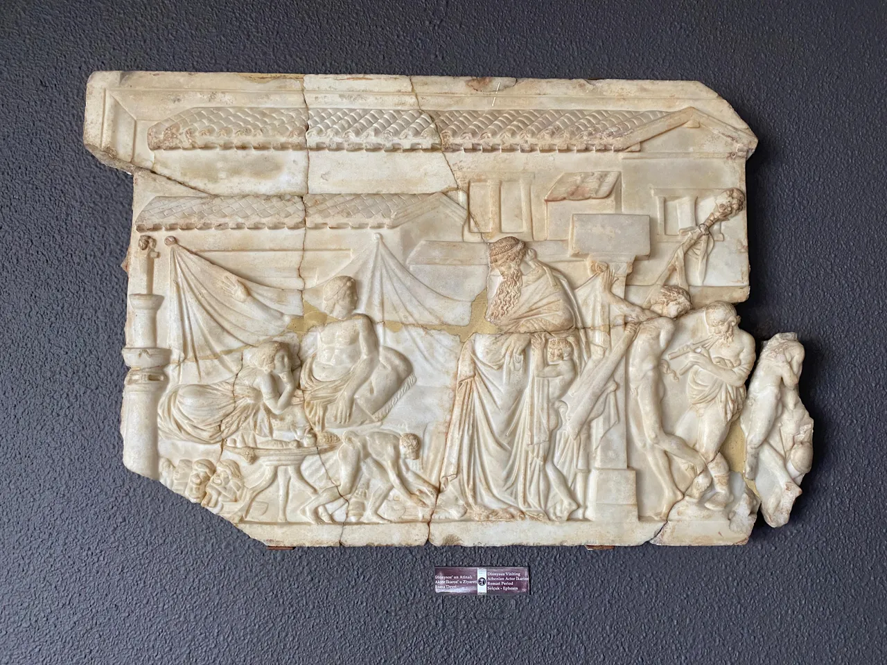 Random statues on display in the museum. You can see Satyros among them. There is also a relief of Dionysus visiting an Athenian actor. This must have been an important event at the time because people immortalized it with reliefs. Again, I don't need to say that it is full of details.