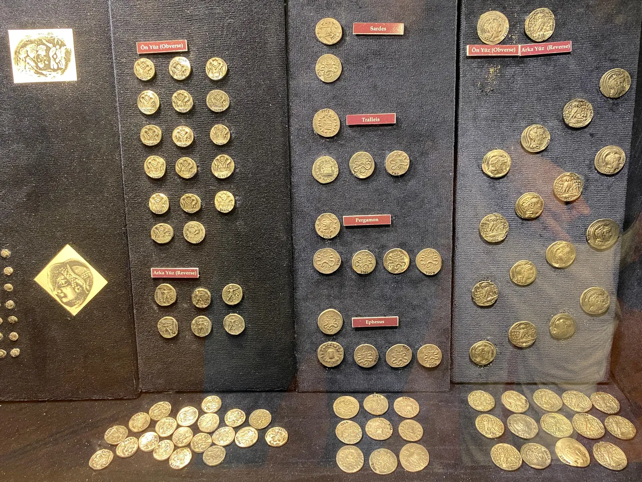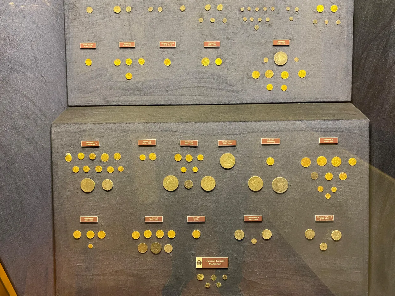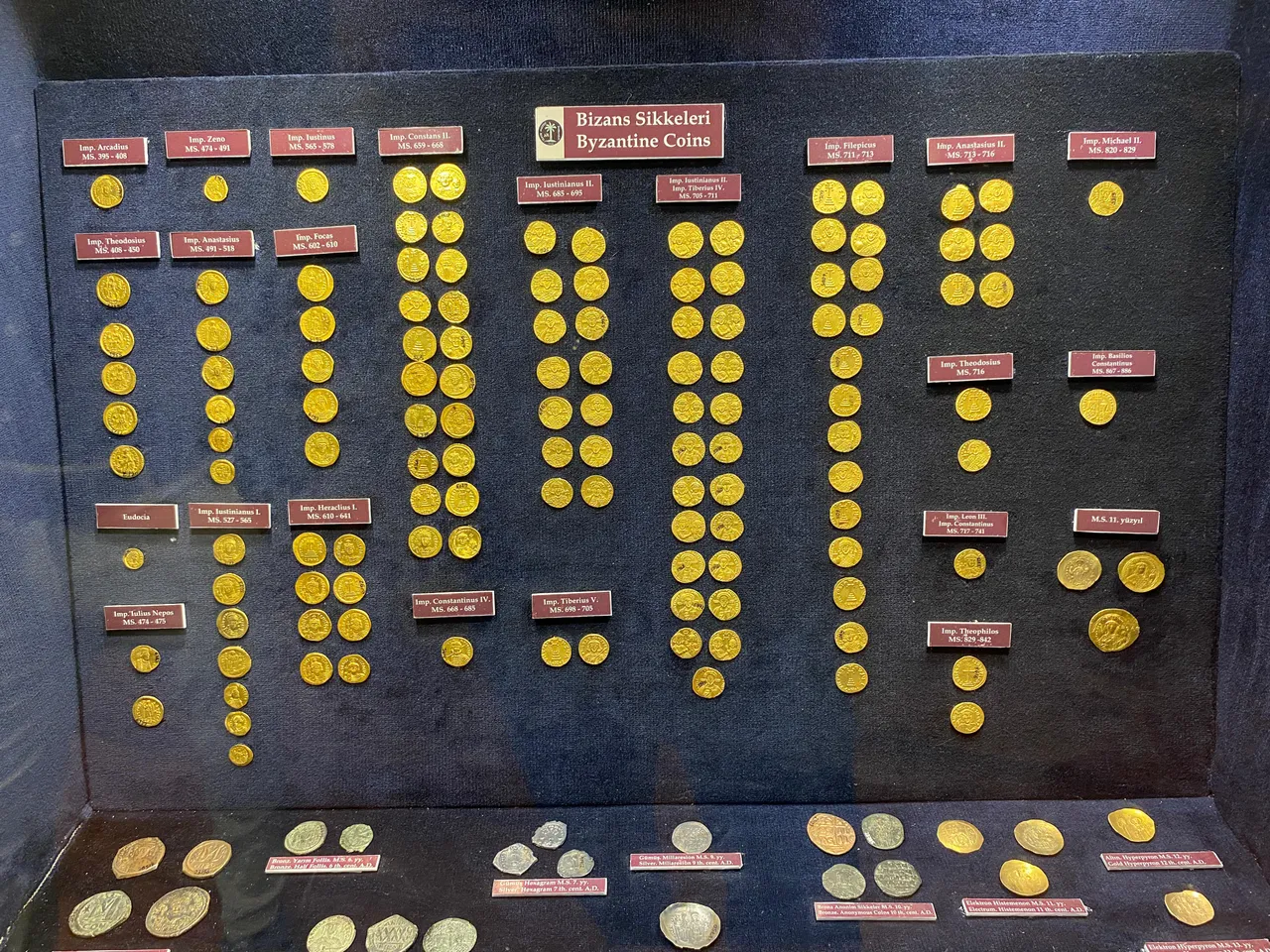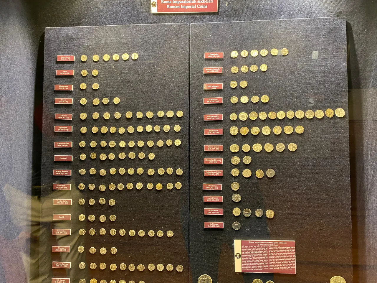 I finish my tour inside the museum with one of the most valuable things in life, coins. Here you can see coins from the Roman period, the Byzantine period and even the Ottoman period. The material the coins are made of depends on the quality of life of the time. If you live in a rich country, of course you will have gold coins. You can also see gold coins from treasure troves in the photos. Imagine finding one of them. You would be rich! Just kidding, you have to hand them over to the government. I don't know if they give you anything in return, but they better, because they are very valuable. By the way, some of the coins have cool stickers on them. I hope you noticed them too.
