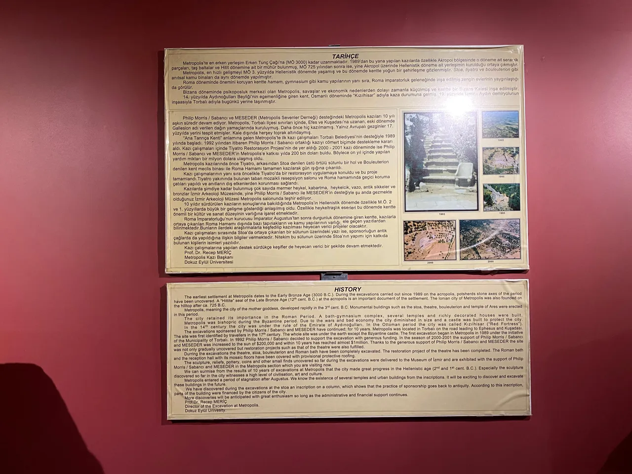 Many of the statues in this museum were found during excavations in Metropolis in Izmir. There is information about this on this sign. The first settlements found in Izmir date back to 3000 BC. It has always been a favorite settlement since then. There are many artifacts from the Roman, Byzantine and Ottoman periods. Houses of rich nobles, baths, theaters are some of them. Some of the artifacts found here show that sponsorship was also practiced in ancient times. Isn't it very interesting?