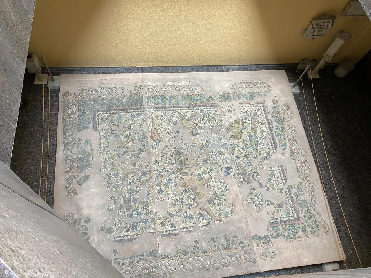 Müzenin alt katında sergilenen büyük bir mozaik parçası vardı. Maalesef oraya inmek yasaktı, muhtemelen orada müzede sergilenecek parçalarla ilgili çalışmalara devam ediyorlar. Sizinle daha önce paylaştığım, Adana'da gittiğim müzede mozaikleri hatırlıyor musunuz? İnsanlar o zamanlarda gerçekten lükse çok değer veriyormuş.