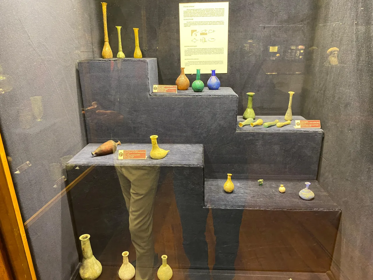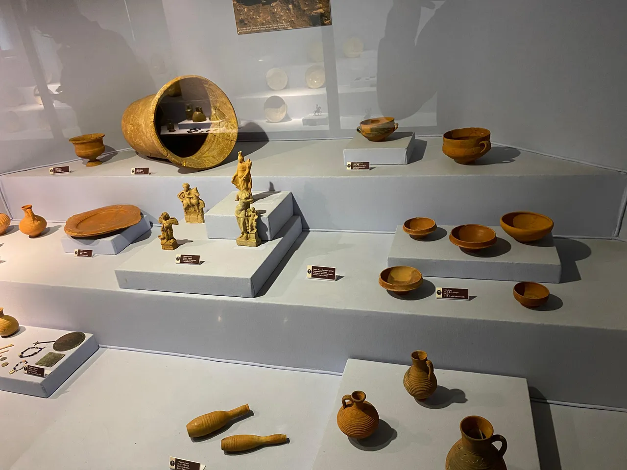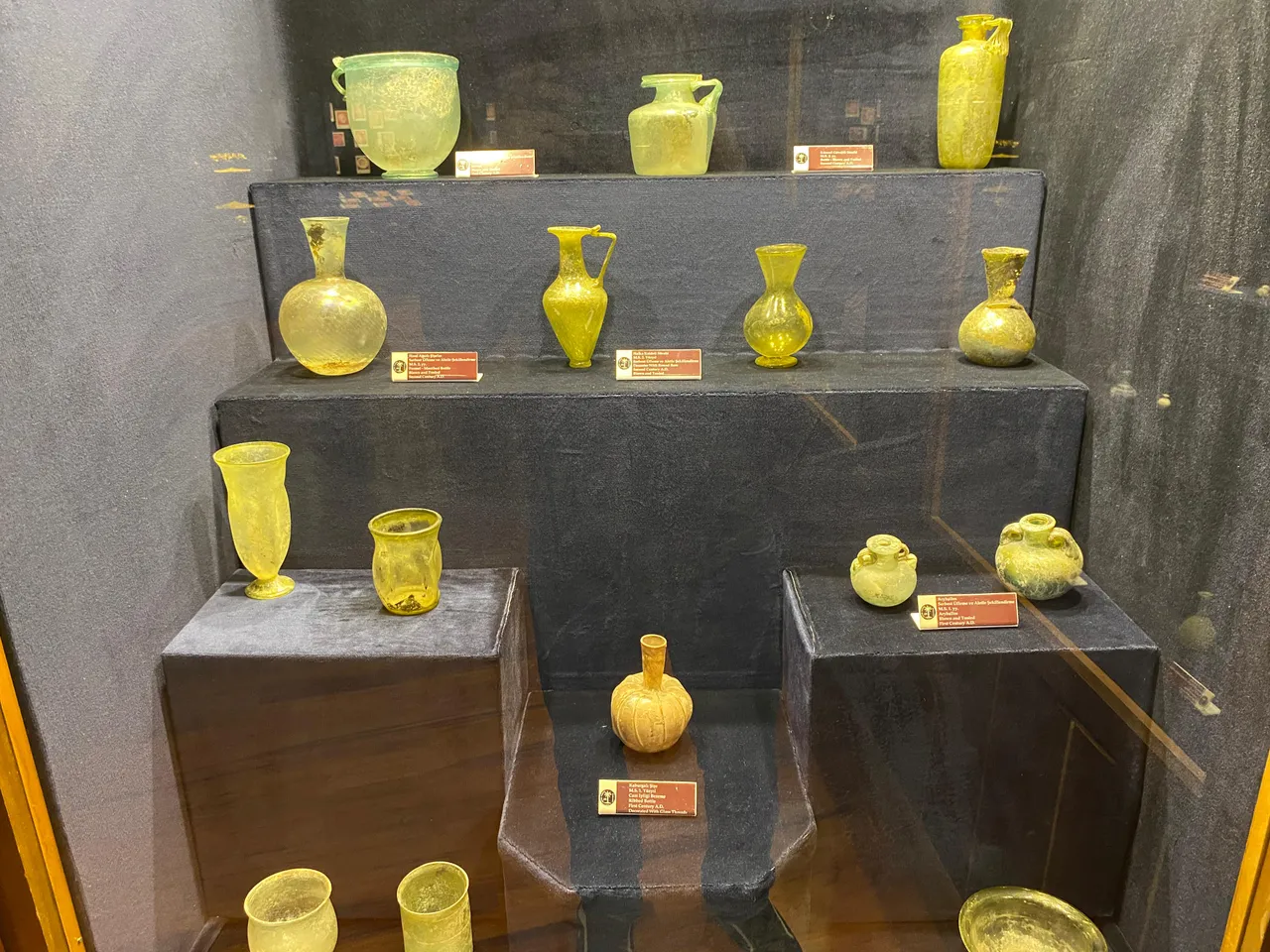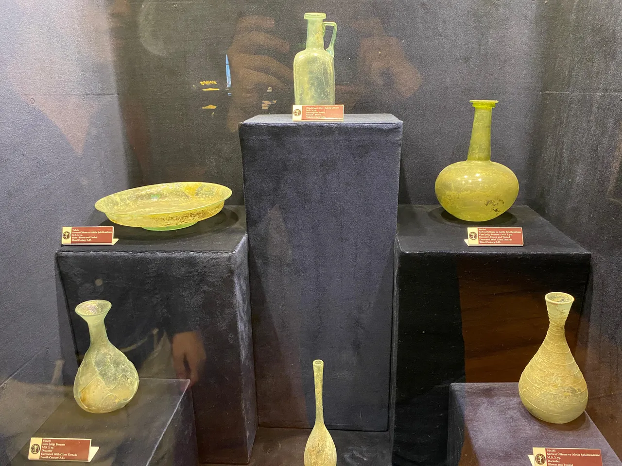 Milattan sonraya ait eserler. O dönem halkın kullandığı parfüm şişelerini ve tabak çanak gibi günlük eşyaları burada görebilirsiniz. Sürahiler, farklı şekillerde ve farklı malzemelerden yapılmış ilginç şeyler var.