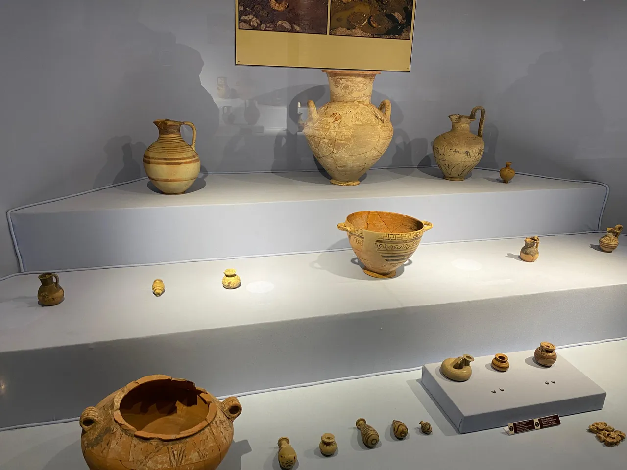 What you see in these photos are Mycenaean ceramics. The Mycenaean civilization lived in this area during the Hellenistic period and left many traces of themselves here. Since the place where they lived was by the sea, there are many traces of this in their ceramic products. For example fish, the sea, birds. As they moved away from the seaside, these artifacts decreased. This may be a sign that they were not on good terms with the people living in Anatolia at that time. I read all this information on the signboard right next to the artifacts.