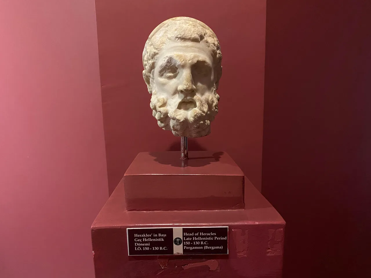 Herakles'in başı ile heykel kısmını bitiriyorum. Gerçekten burada gördüğüm şeyler beni çok etkiledi. Bu heykeldeki sakallara bakın. Acaba kaç gün bunu yapmak için uğraştılar.