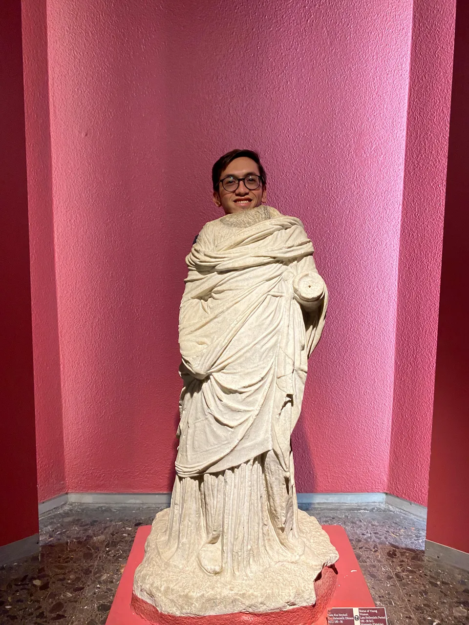 There was a statue of a headless woman and my brother thought his head would fit perfectly 😂. I think it's good. What do you guys think?