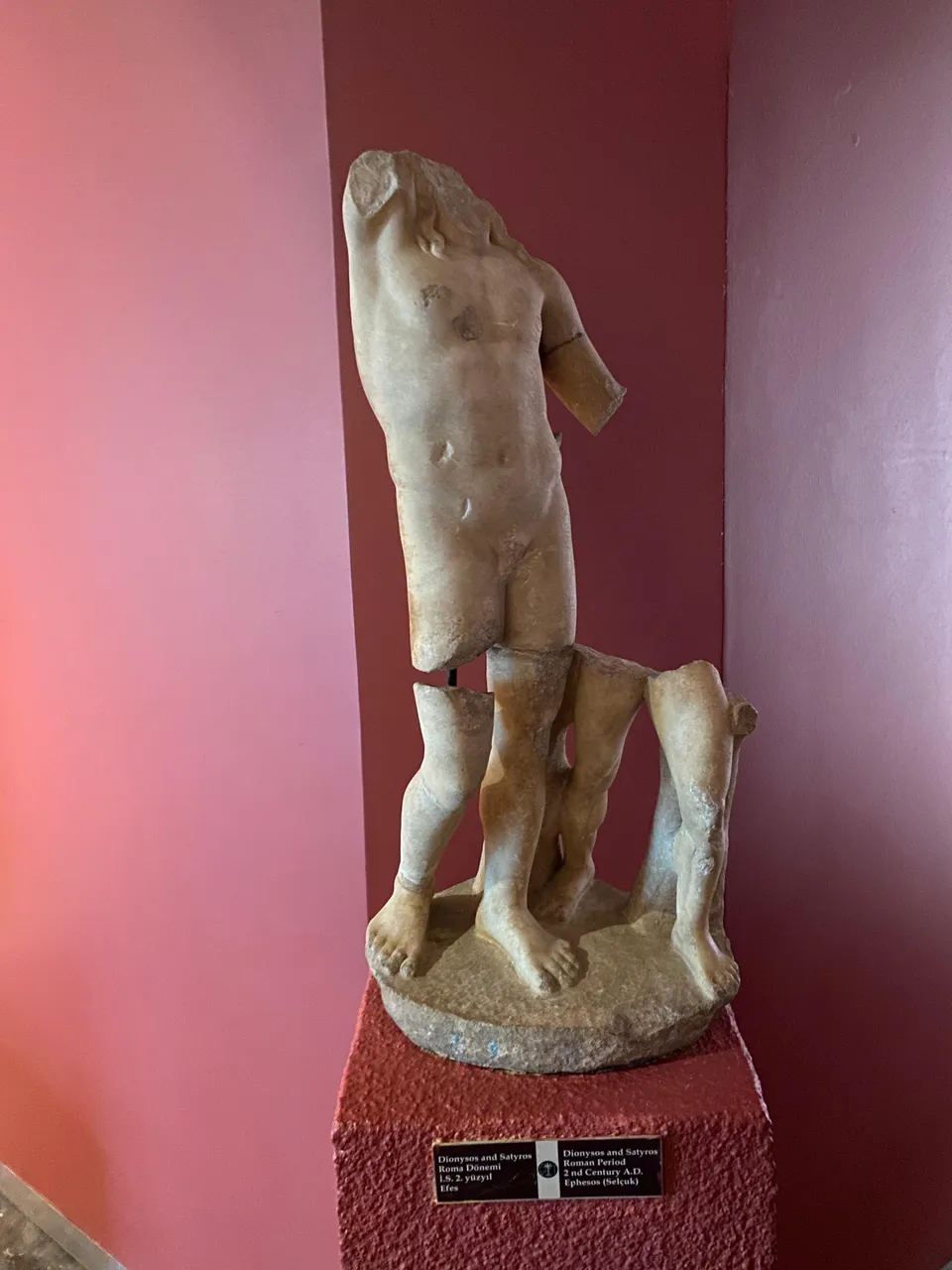 The statue of Dionysus and Satyros. It looks like Satyros is not quite himself XD I wonder what happened to the top part of this statue. Was it never found or is it not here because it was found in pieces?