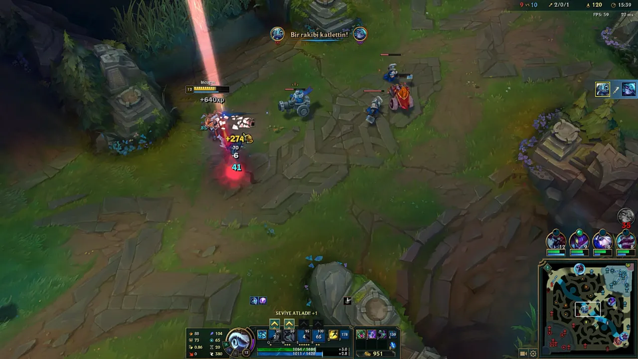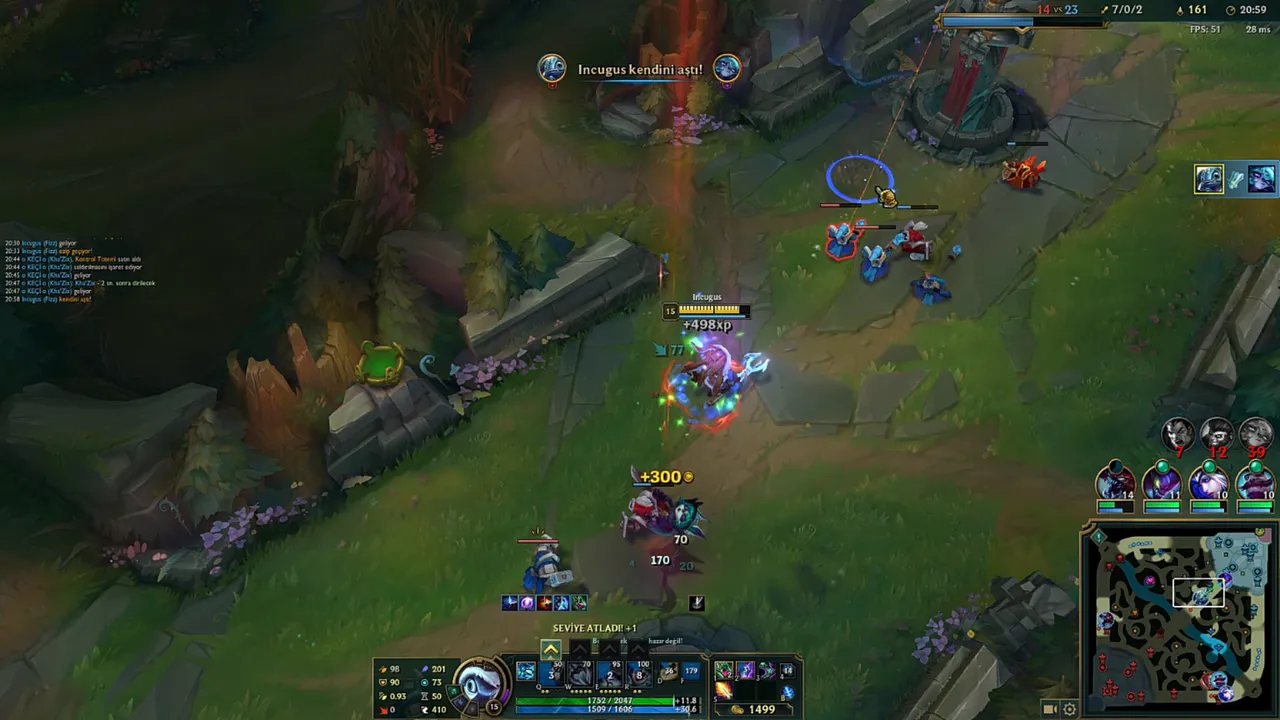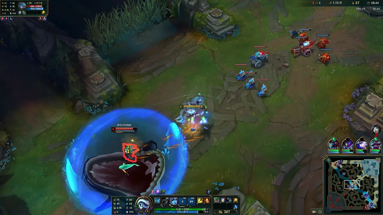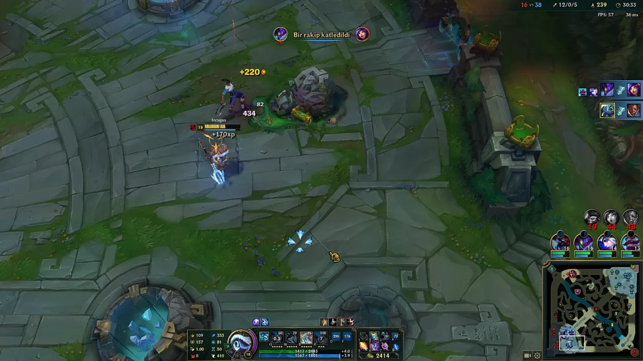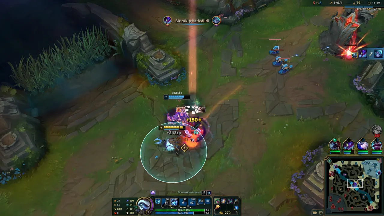 When we got to the midgame, with a few scores I was at the point where I could destroy anyone I came across. I destroyed a Neeko with full health in a very short time because he couldn't escape any of my abilities. He can't escape because Fizz's abilities are not skillshots. You use Q and W by clicking on the opponent and E has a good range. The only thing left is R, Ultimate, and when you hit the opponent with that ability, he is 99% dead. At some point, flash won't save them either because I'll be able to reuse my abilities quickly thanks to my cooldown reduction items.
