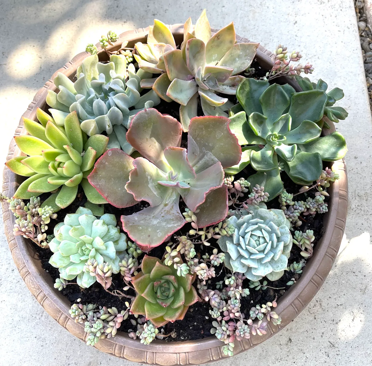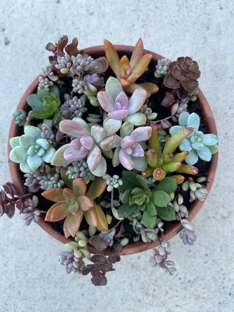 因多肉有着各种各样的颜色,而且大小形状各不同,把它们拼种在一起也是一件很好玩的事情。由于培育的多肉越来越多,我也就玩起了拼盆。 把刚长出来的小多肉种在一起,而又把不同的品种搭配起来,可爱极了。 每天有当闲的时候就是照顾它们,欣赏它们,和它们在一起的时候时间过得特别快。