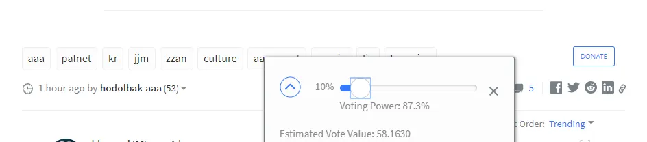 - 10%의 보팅 마나로 업보팅 합니다. 업보팅이 반영되기를 잠깐 기다립니다.