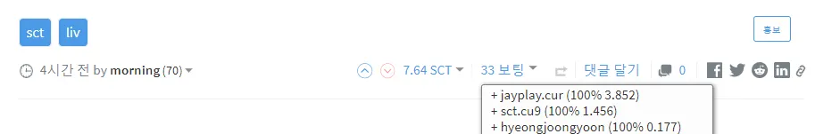SCT로도 테스트를 했습니다만, @morning님의 글에 10%로 업보팅후 SCT는 100%가 찍힌것을 확인할 수 있습니다.