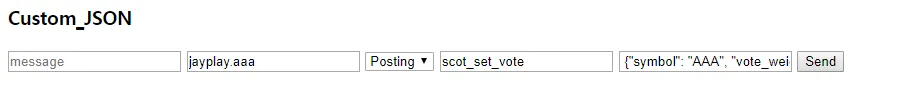 scot_set_vote으로 꼭 해야합니다. (고정값) - custom_json: {"symbol": "AAA", "vote_weight_multiplier": 10, "downvote_weight_multiplier": 10}