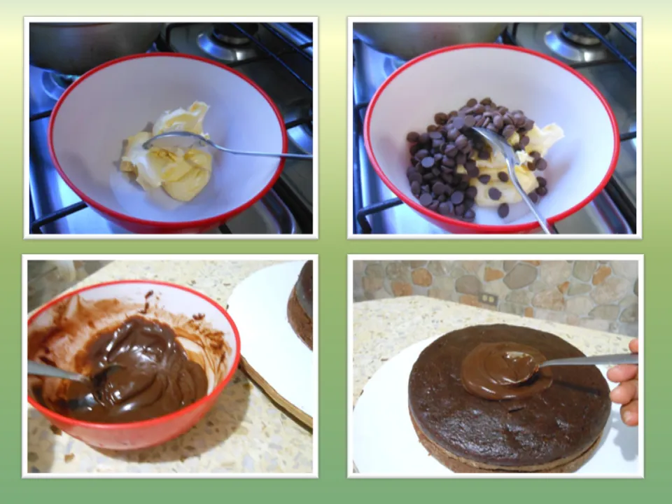 For the glaze, I place the dark chocolate, margarine and a little soy milk in a cup. In this step I confess that I overused margarine, but I already learned that not much is necessary, just a little is enough. (in the ingredients I placed the correct amount).