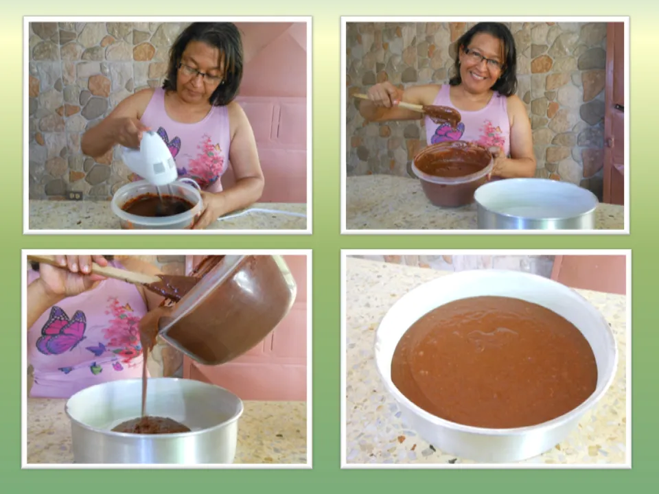 Lista la mezcla, ya tengo mi molde preparado y procedo a verter toda esta delicia en él y lo llevo al horno precalentado a 180º por 40 minutos, la casa está con un aroma espectacular.