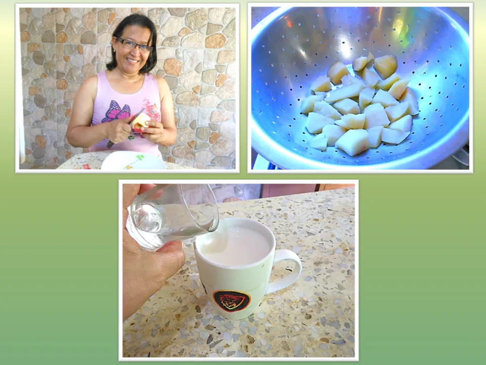 Inicio mi preparación, pelando las manzanas y las coloco en baño de maría, para hacer un puré, este aportará humedad a nuestra torta.