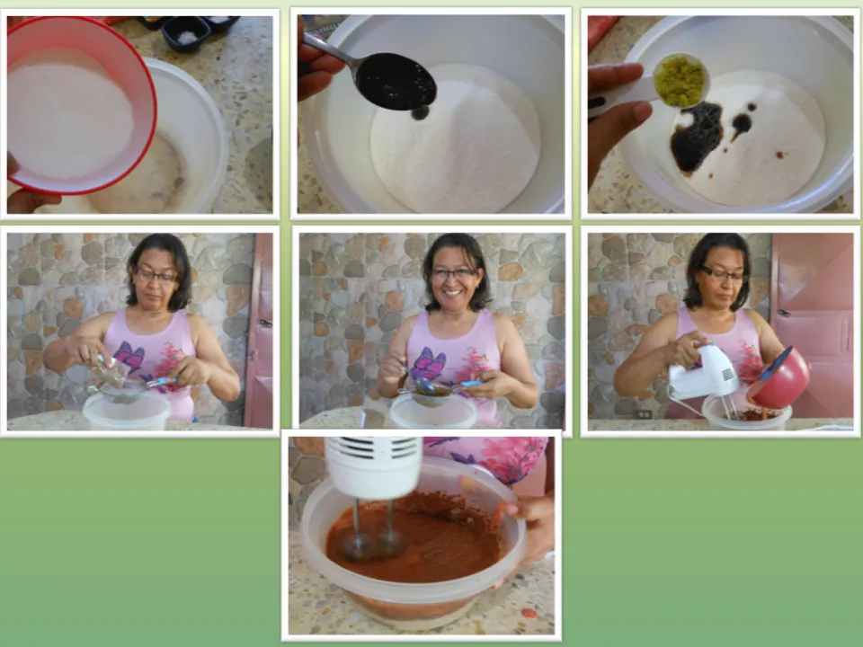 Ahora sí, en un tazón coloco el azúcar, la vainilla, la ralladura de naranja, el cacao (este debemos tamizarlo para eliminar los grumos), seguido agrego la preparación líquida que tenía en reserva y procedo a batir para integrar los ingredientes.