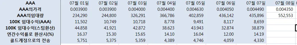 트리플에이 임대 6월 7월 해당월 배당룰에 대한 공지입니다.