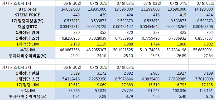 4 제네시스 JJM에 대한 포스팅 #28 현재 각각 27.84%, 6.26%
