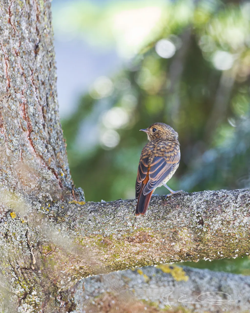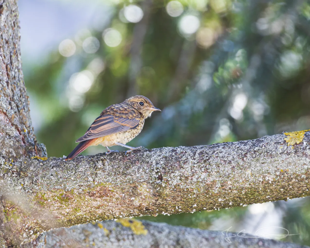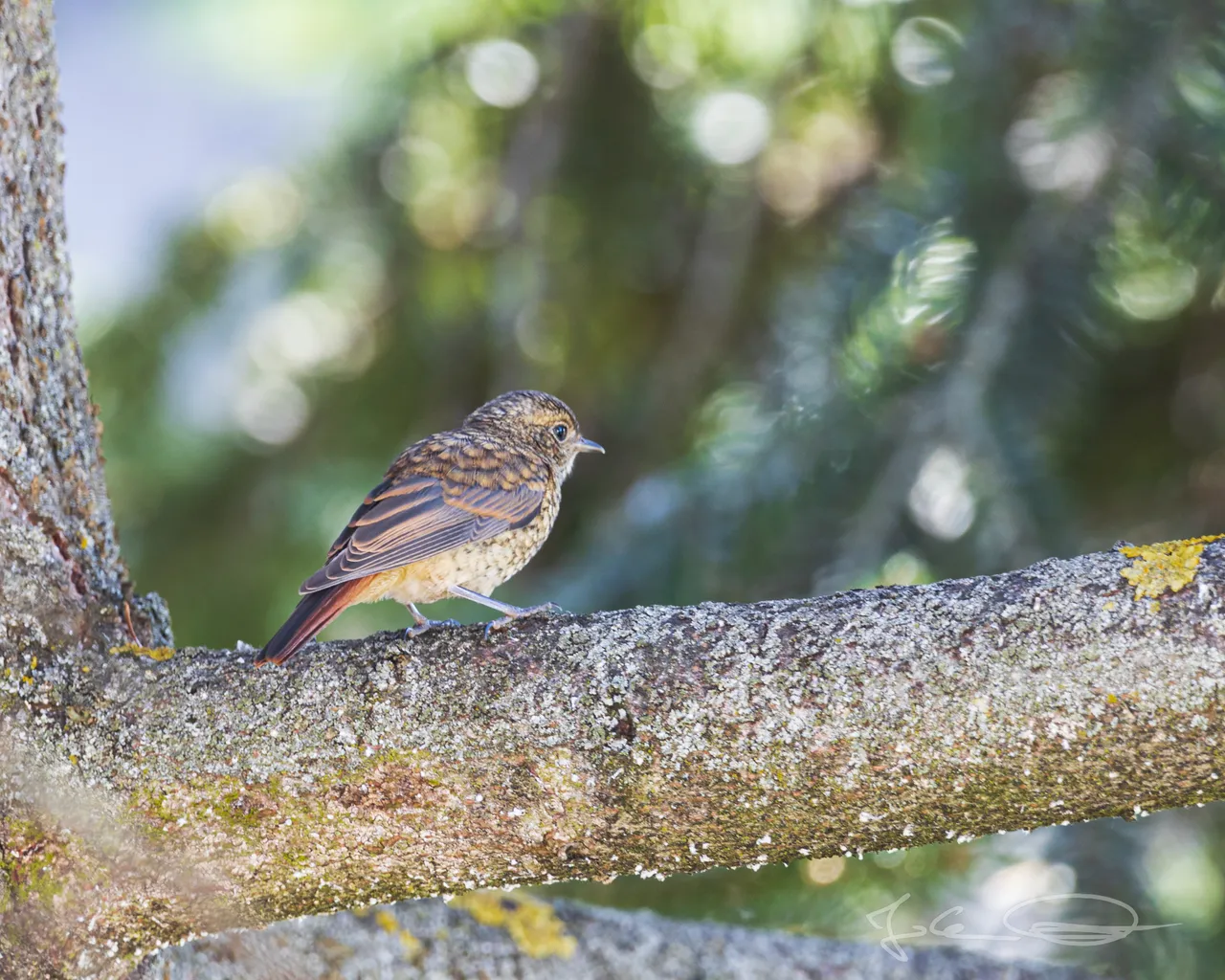 The bird did not come quite to us, but he sat briefly on a tree branch in front of our balcony. In my opinion, it is a redstart, but as always I'm not sure. | Ganz zu uns gekommen ist der Vogel zwar nicht, aber er hat kurz auf einem Baumast vor unserem Balkon gesessen. Meiner Meinung nach handelt es sich um einen Hausrotschwanz, aber wie immer bin ich mir leider nicht sicher. |
