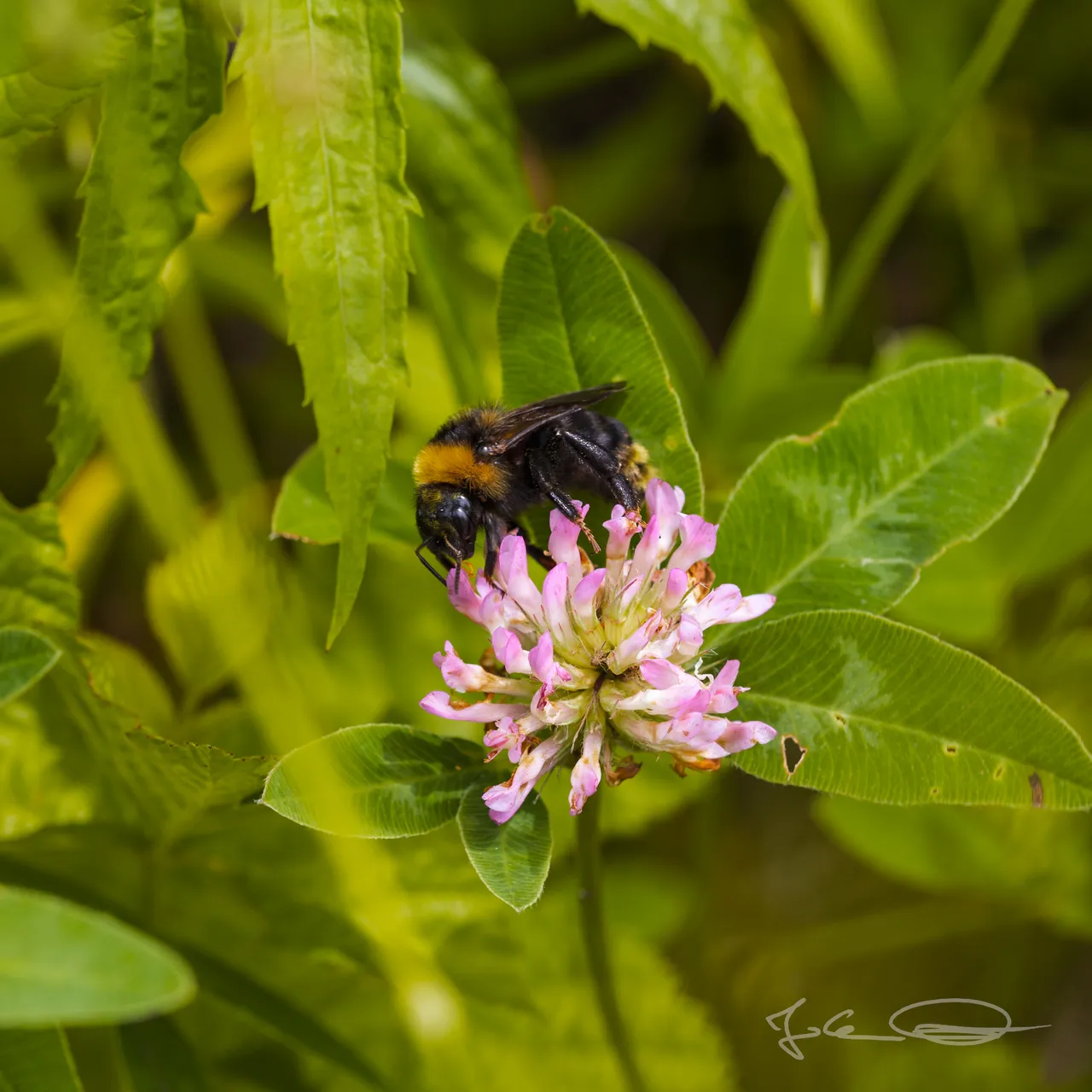 When the bumblebee landed on the clover blossomto collect pollen and nectar, the plant almost bent to the ground and the bumblebee almost fell off.