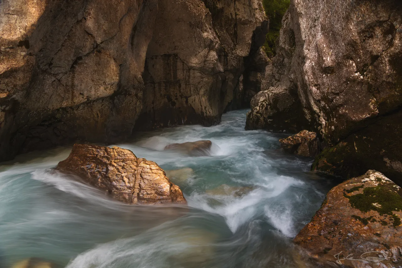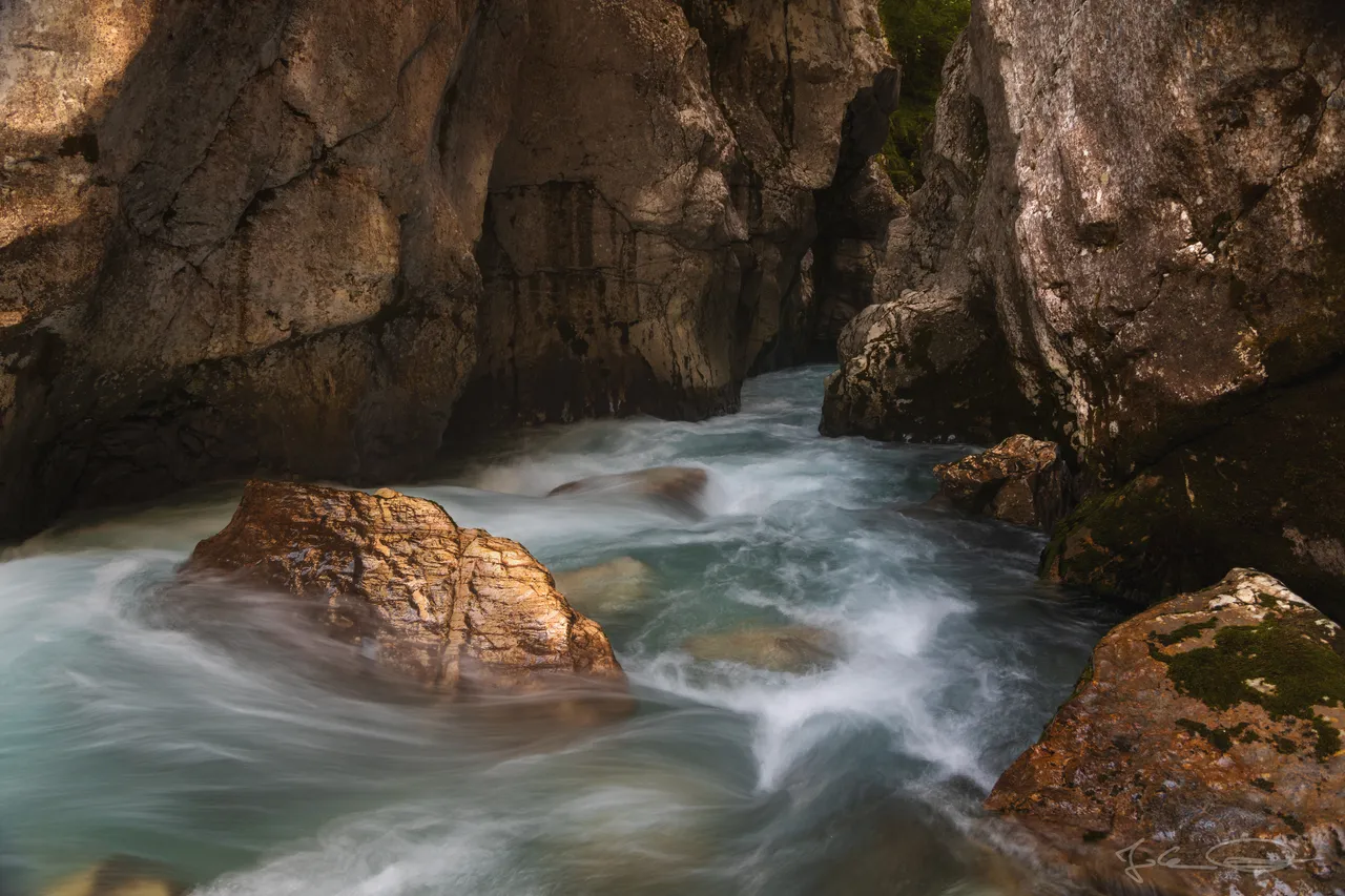 I have not shown any photos of the Soča river for a while, and I believe that this line of sight into the great Soča gorge has never been in a post. All three photos have been taken with the same camera settings. | Vom Soča Fluss habe ich ohnehin schon eine Weile keine Fotos mehr gezeigt, und ich glaube, diese Blickrichtung in die große Soča Schlucht ist noch nie in einem Beitrag dabeigewesen. Alle drei Fotos sind mit den selben Kameraeinstellungen gemacht worden. |