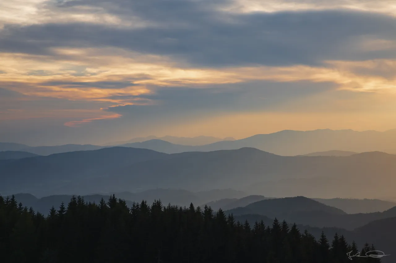 Here you can see up to the horizon many different shaded layers of the mountains. | Hier kann man bis hin zum Horizont viele verschiedene Schichten von Schattierungen der Berge sehen. |