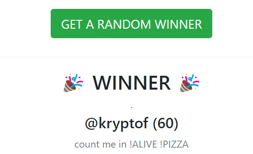 I will use the https://filoz.info/picker/ to determine the Winner.