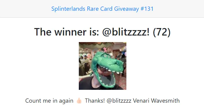 Hello Hive community, welcome to my splinterlands giveaway where I will be raffling off a rare card for the winner.