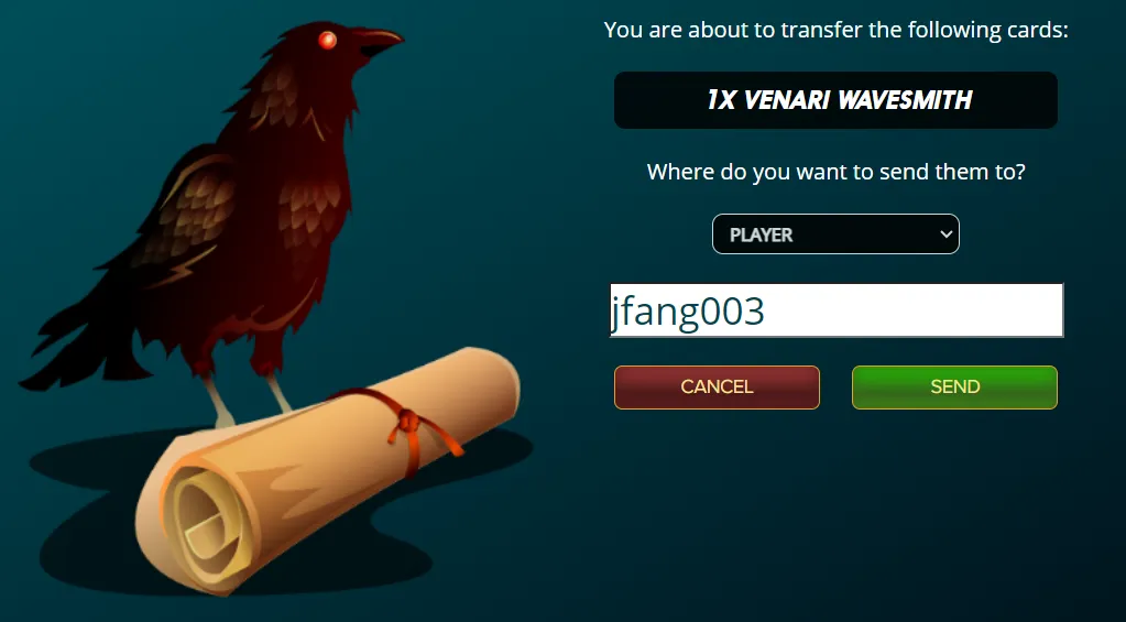 The cards available for the giveaway are Venari Wavesmith, Naga Assasin, Venari Crystalsmith, Venari Bonesmith and Gargoya Devil.