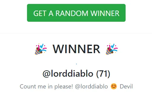 • I will use the https://filoz.info/picker/ to determine the Winner.