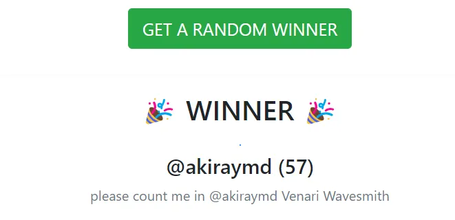 I will use the https://filoz.info/picker/ to determine the Winner.