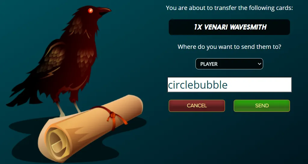 The cards available for the giveaway are Venari Wavesmith, Naga Assasin, Venari Crystalsmith, Venari Bonesmith and Gargoya Devil.