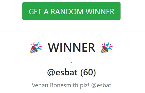 I will use the https://filoz.info/picker/ to determine the Winner.