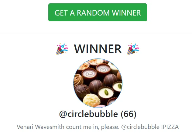 • I will use the https://filoz.info/picker/ to determine the Winner.