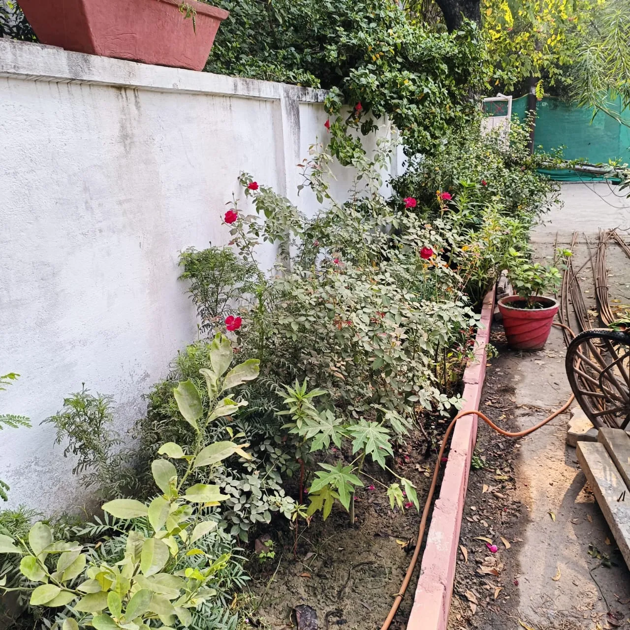 Our garden boasts a wide variety of flowers, such as roses, jasmine, lilies, and many others. Each flower tells a unique story through its color and form. The trees in this garden, like the neem and mango trees, further enhance the beauty of this place.