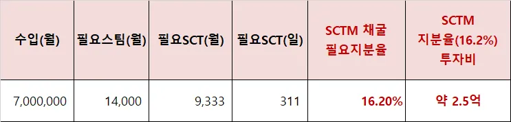 물론 스팀이나 SCT 가격이 더 오르면 수입은 더 많아진다.SCT ,스팀이 문제가 없고 현재수준을 최소 유지해야 한다.