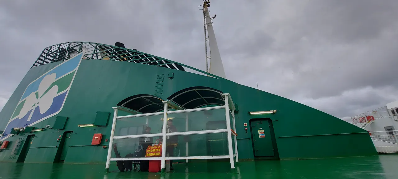 Here's the smoking area of the ship, two of the lads are there. It was a bit annoying that we had to bring our gear around with us everyone, rather than being able to get some kind of locker to put everything.