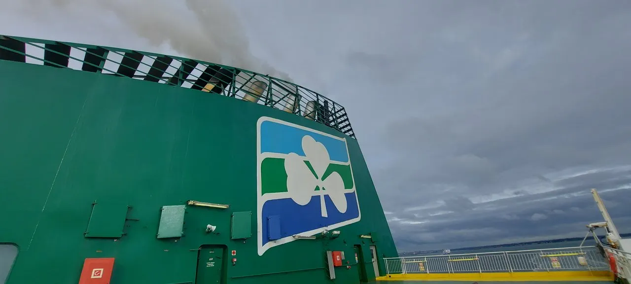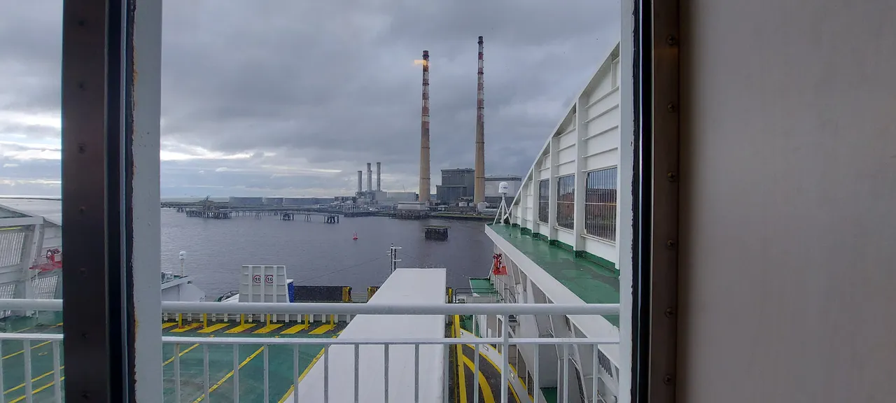 Here's the view from the top deck of the boat at around 7:40, all the cars in the carpark were waiting to drive