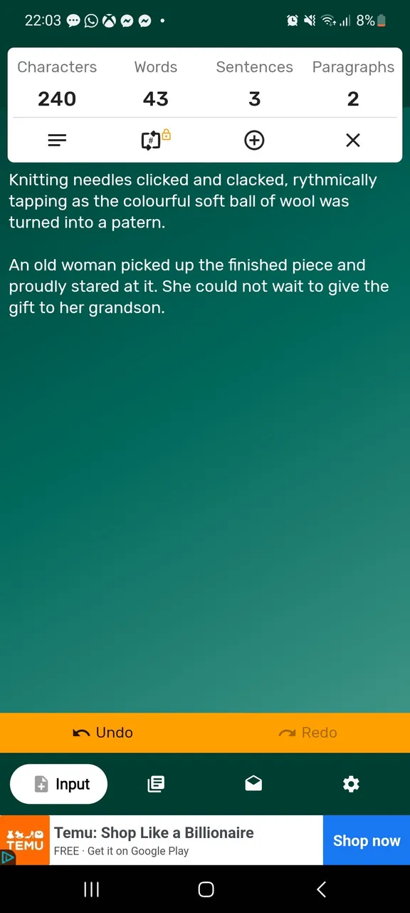 @zapfic.club released a prompt in the Freewriters Community, asking us to write a story in 240 words or less, using the prompt, 'Knit.'