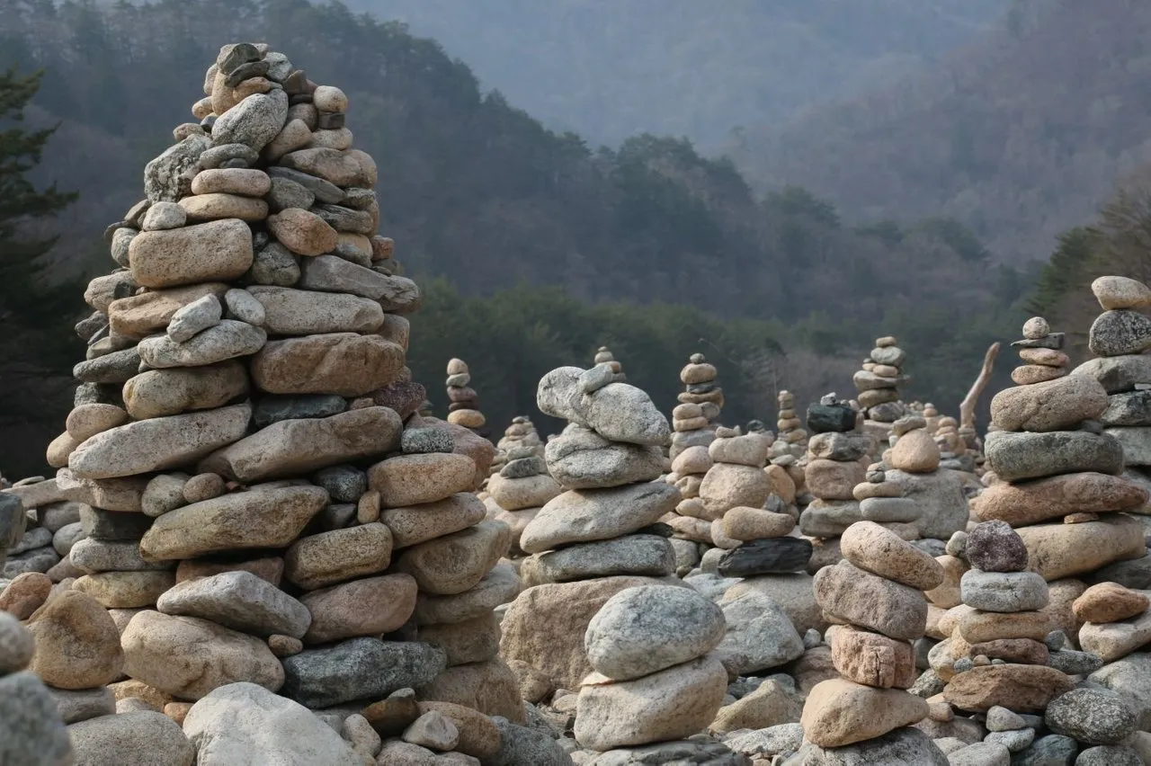 워낙 많은 돌탑이 빽빽하게 들어있어 발걸음조차 조심스럽다. 누군가의 소중한 마음과 땀이 깃든 작품들이 아닌가.