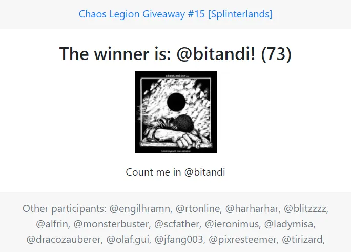 Welcome to my Splinterlands Chaos Legion Giveaway.