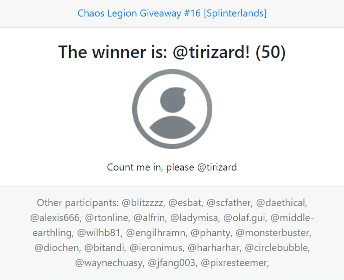 Welcome to my Splinterlands Chaos Legion Giveaway.