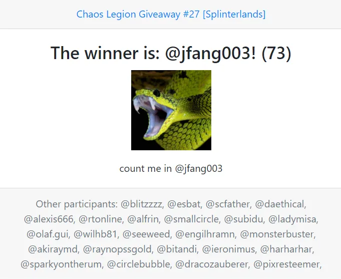 Welcome to my Splinterlands Chaos Legion Giveaway.